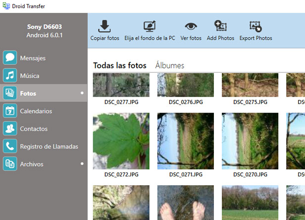 Transfiriendo fotos desde un teléfono Android a PC: Droid Transfer